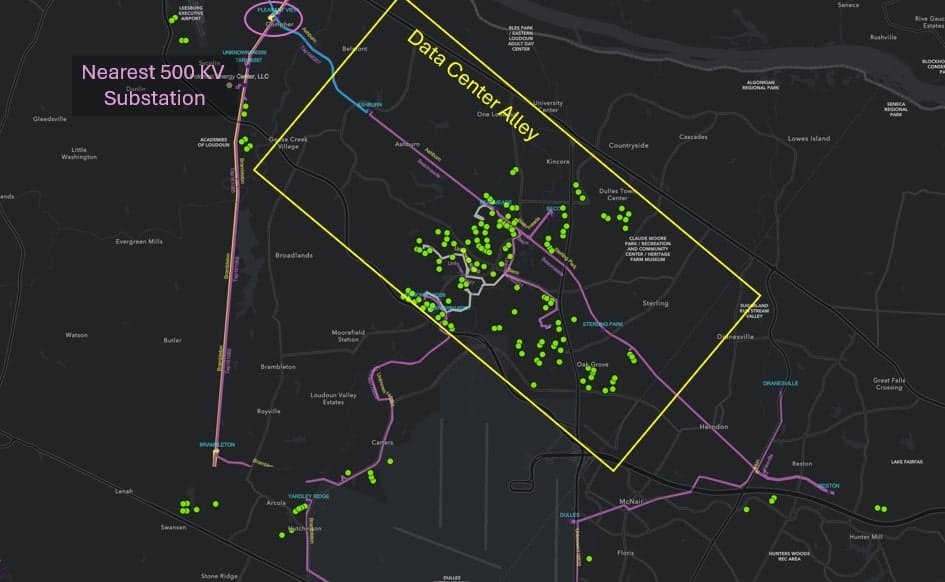 Approximately ~4,000 MW growth has already occurred in data center alley over the last 5 years with plenty more on the way. Each green dot in the below map is an existing data center.