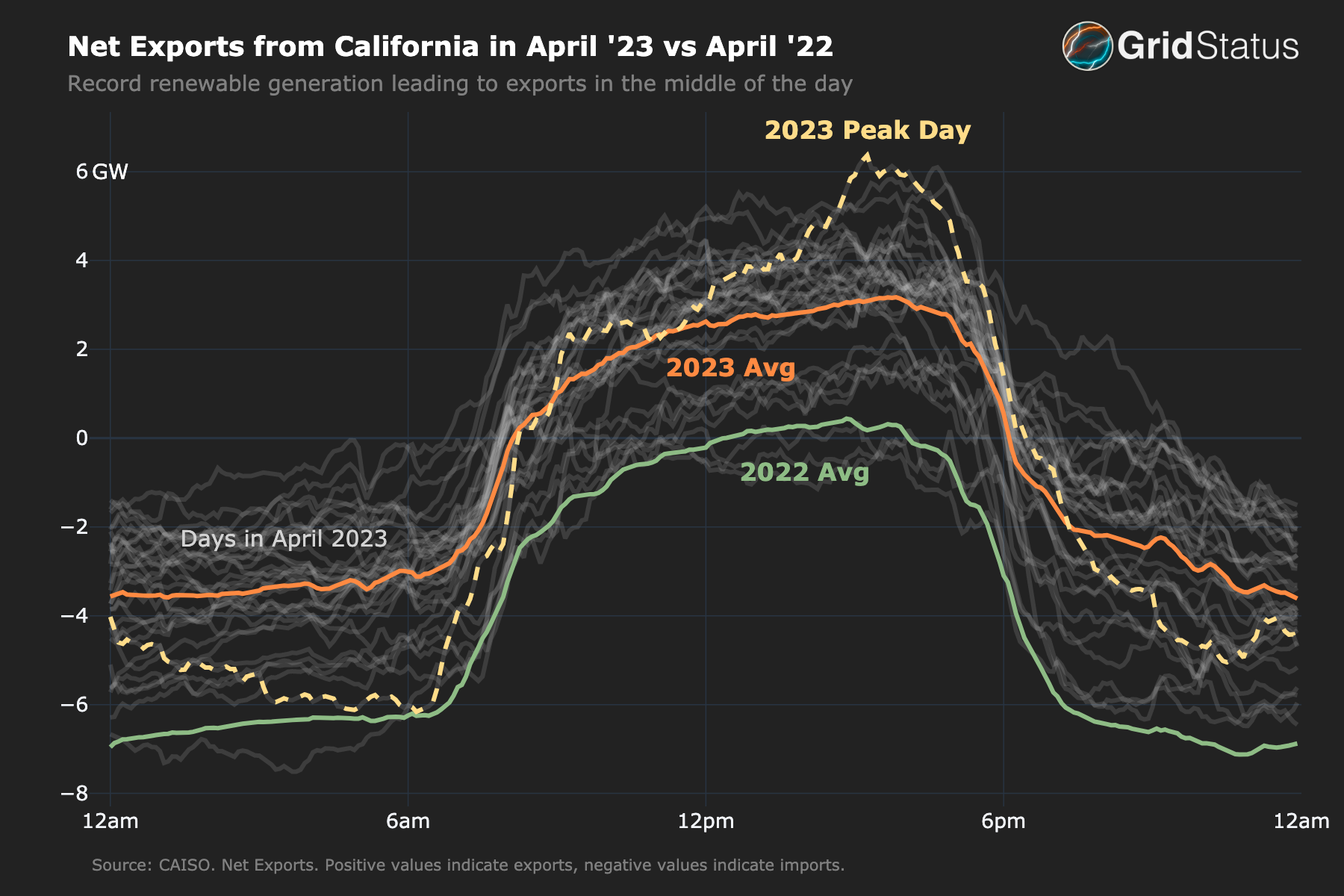 - Net exports from CAISO reached their highest absolute value of all time