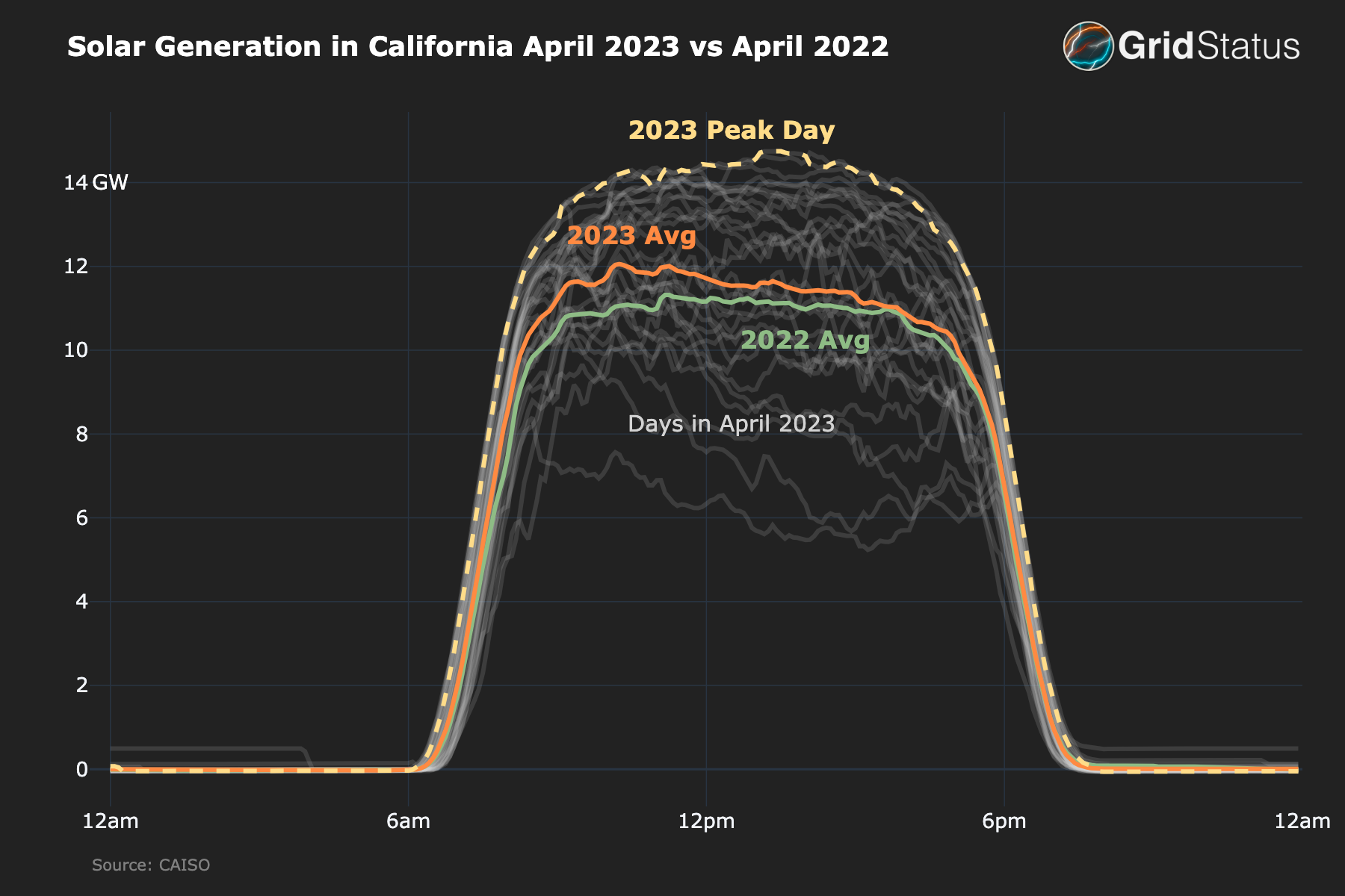 Between 2019 and 2023 the average net load ramp for the period 4-9pm in April went from 11.3 GW to 16.9 GW, but the sharpest increase came between 2020 and 2021 as the net load ramp increased from 11.5 GW to nearly 15 GW.