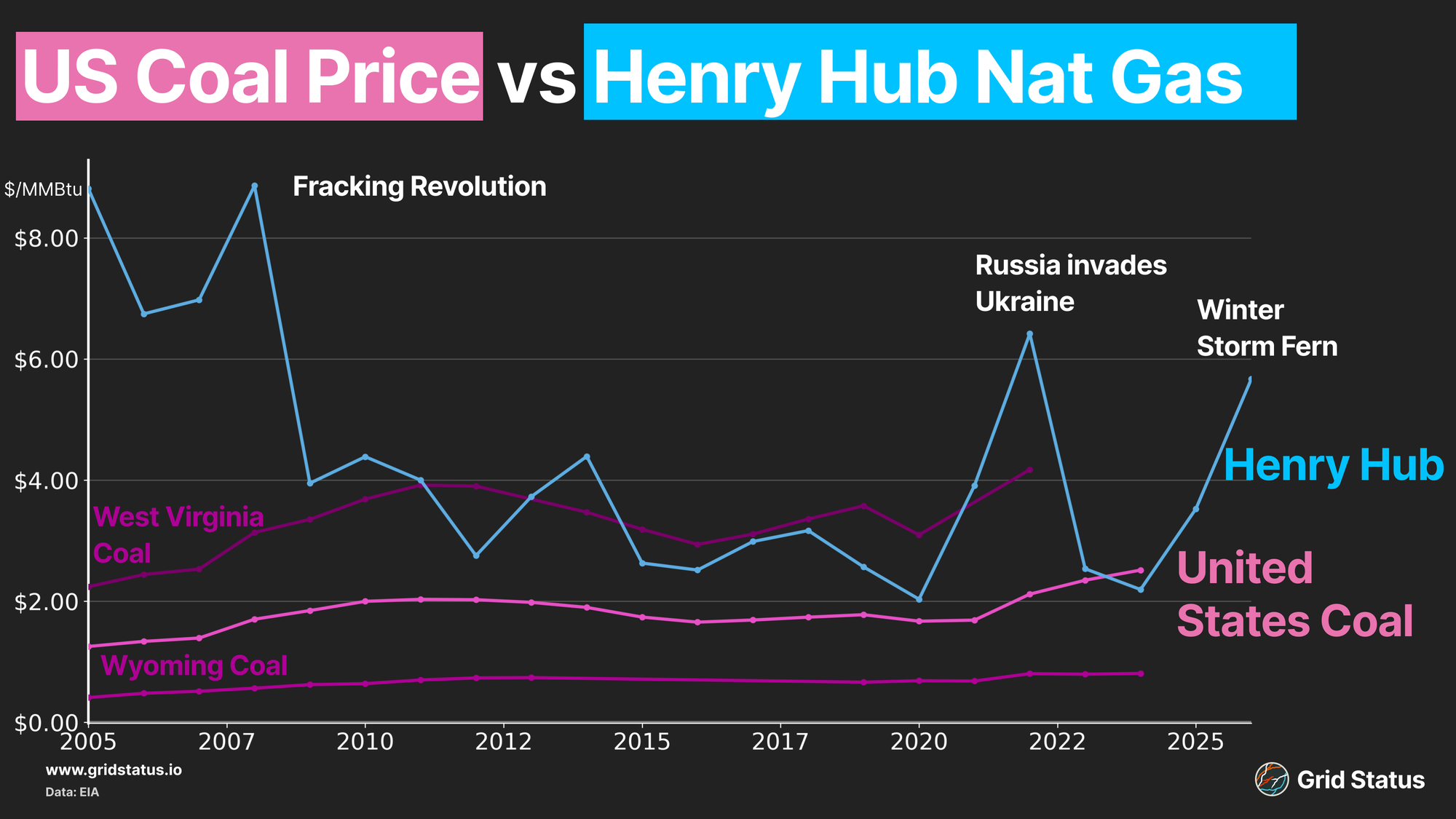 We have seen the volatility of natural gas spot pricing for years, most recently with winter storm Fern. Coal pricing is generally anchored in longer-term contracts. If a region of the country has a cold winter, leading to an increase in coal burn, coal plants must plan around their already scheduled coal deliveries to ensure fuel supply. Buying coal in the middle of a cold winter can be more difficult due to contract structure.