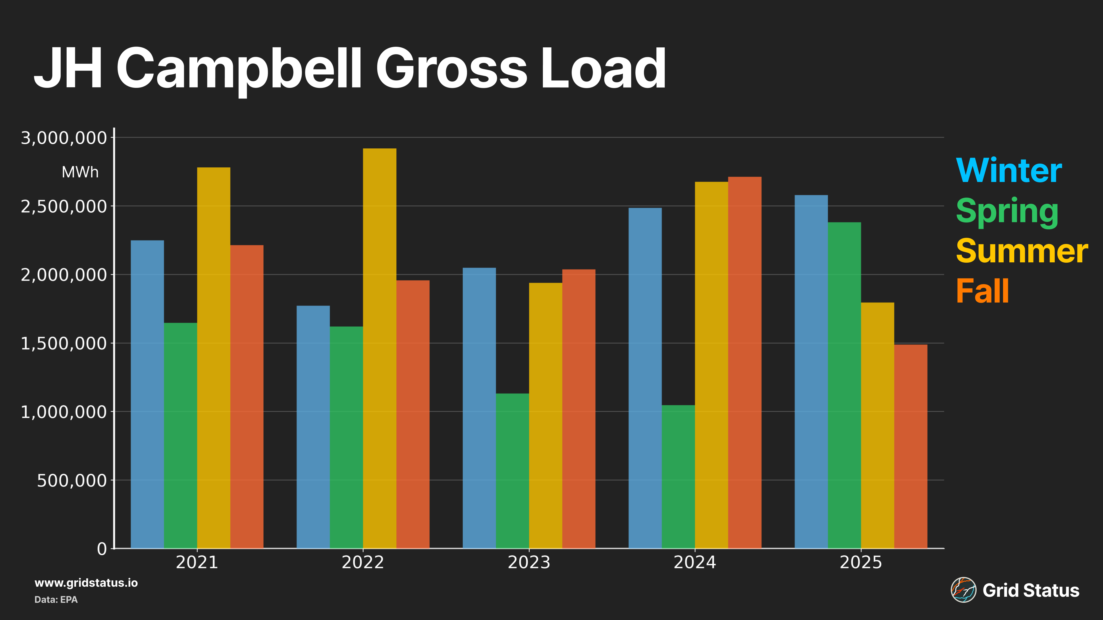 When this announcement was made, it was a bit confusing whether this unit had run since 2022, as coal gen disappeared from PACW’s fuel mix according to reporting from the EIA. Looking at the data from the EPA, it appears this plant has continued to run. TransAlta owns the plant and has been selling the power via a long-term contract with Puget Sound Energy. EPA data shows the highest burn during the fall season when flows from the Desert Southwest are strapped and reservoir levels for hydro generation are at their lowest.