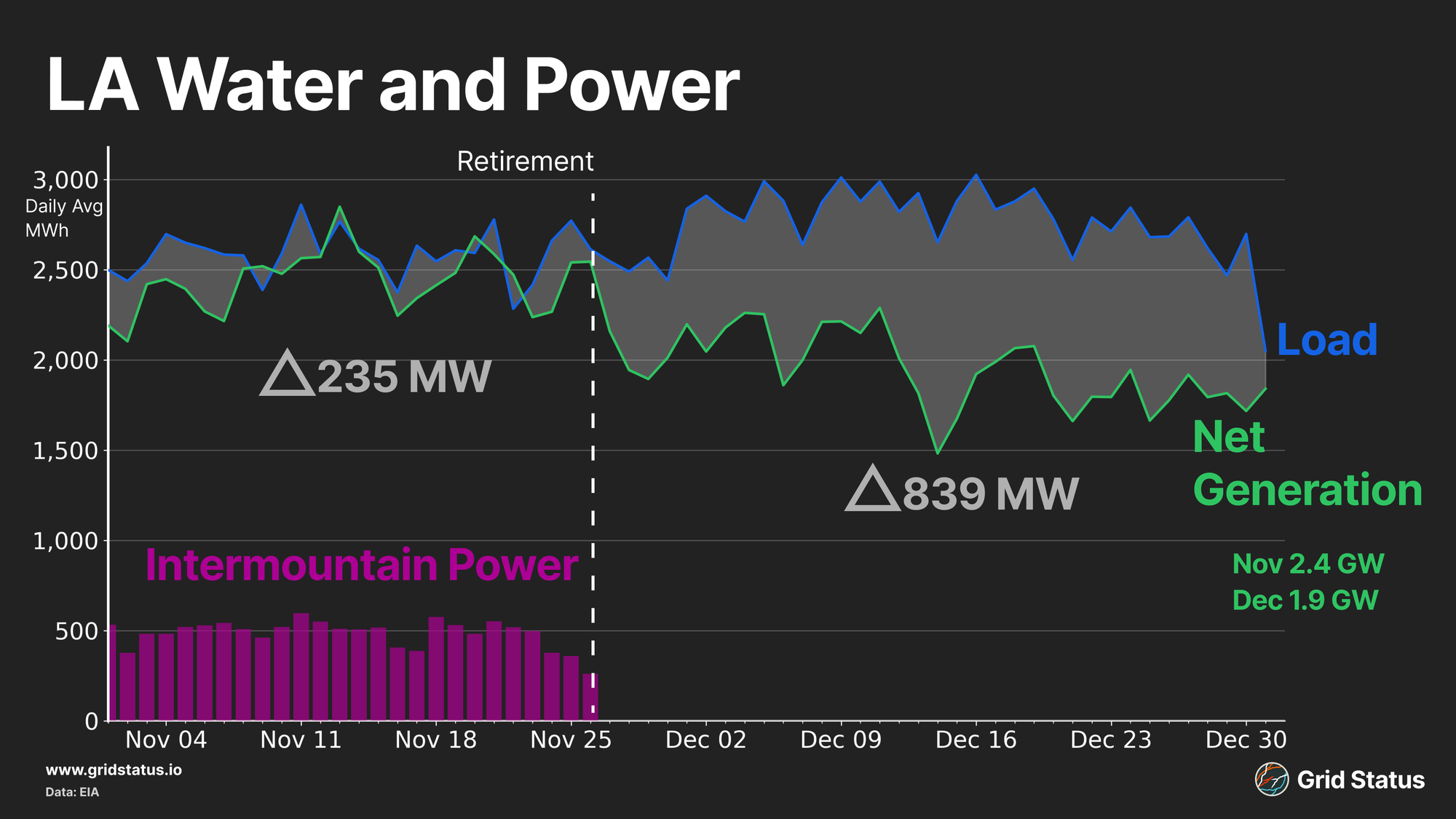 Intermountain Power Plant said goodbye to the grid, and the impacts from this plant coming offline were seen almost immediately. Intermountain served the LA Department of Water and Power (LADWP) to provide baseload generation to the LA area (which is physically within, but administratively without in relation to the broader CAISO grid).