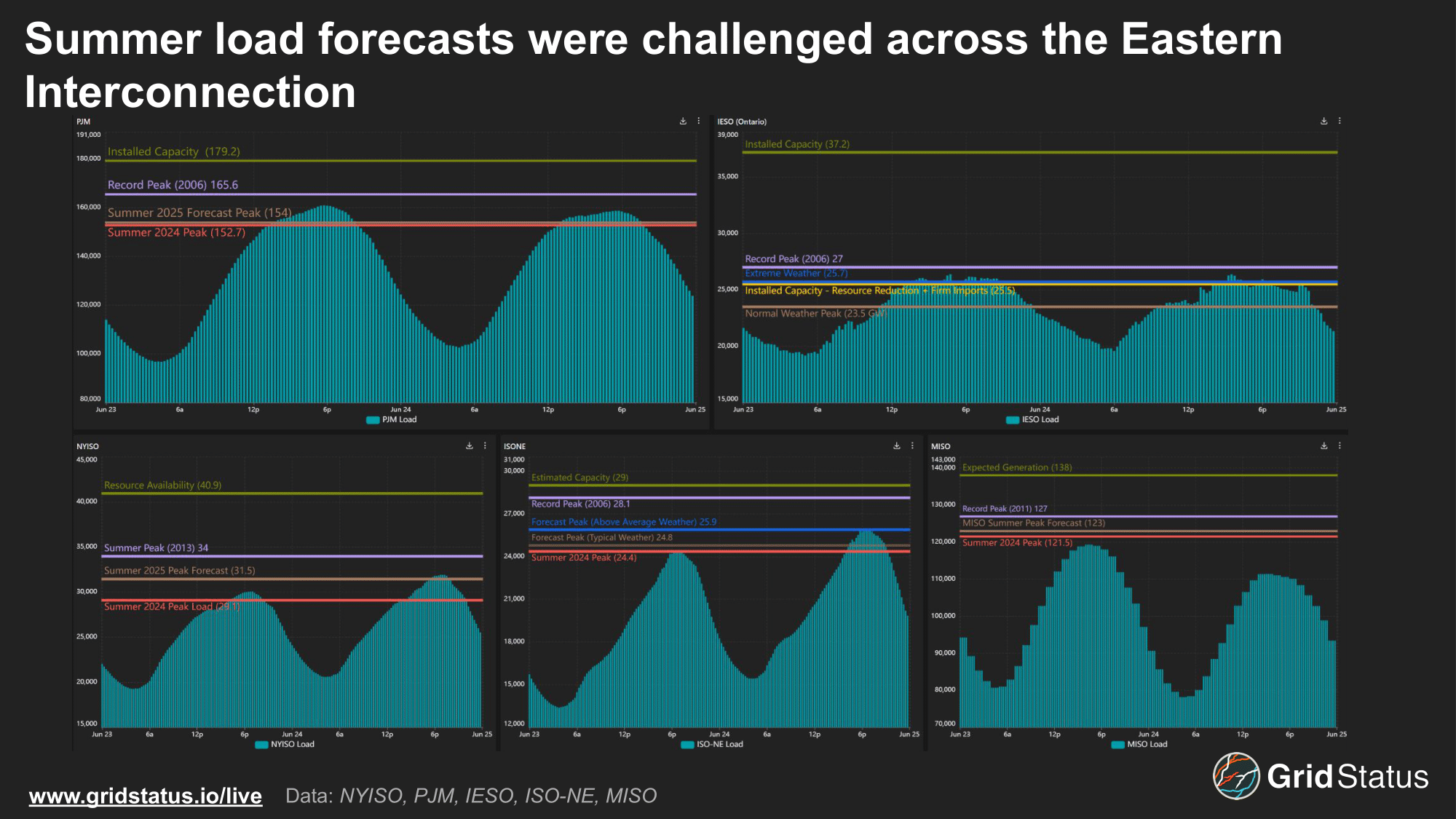 PJM, NYISO, ISO-NE, and IESO exceeded last summer's peak demand, and did so before July. With load climbing beyond forecast, we break down how each region responded and navigated this record-breaking early-season heat event.