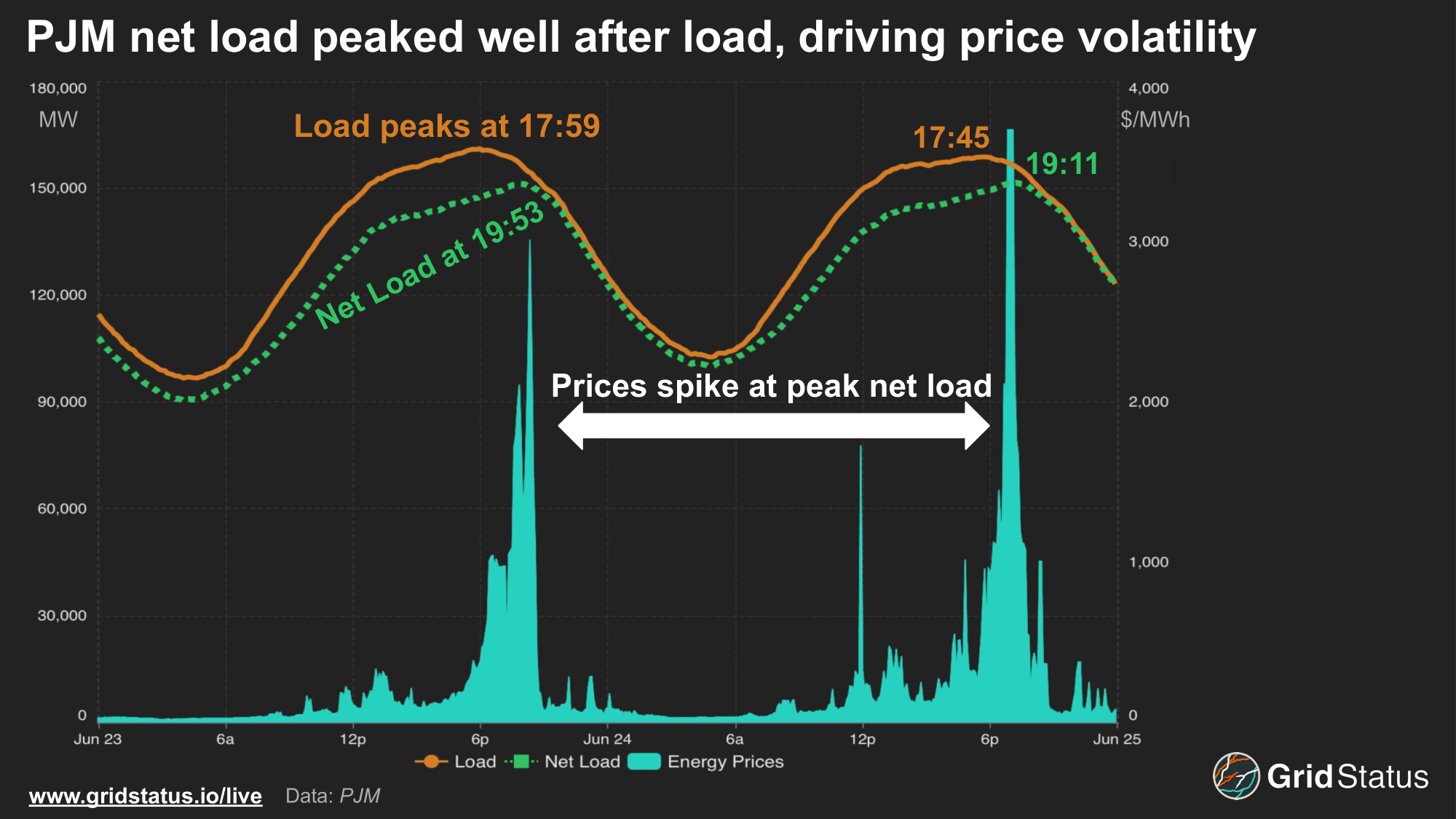 Similar trends were observed in PJM where the net load peak drove the highest level of price volatility. On both Monday and Tuesday, load peaked during HE 18. While PJM does not have the level of BTM solar as New England and New York, utility-scale solar installations have risen in recent years, shifting risks towards the HE 20 net load peak.