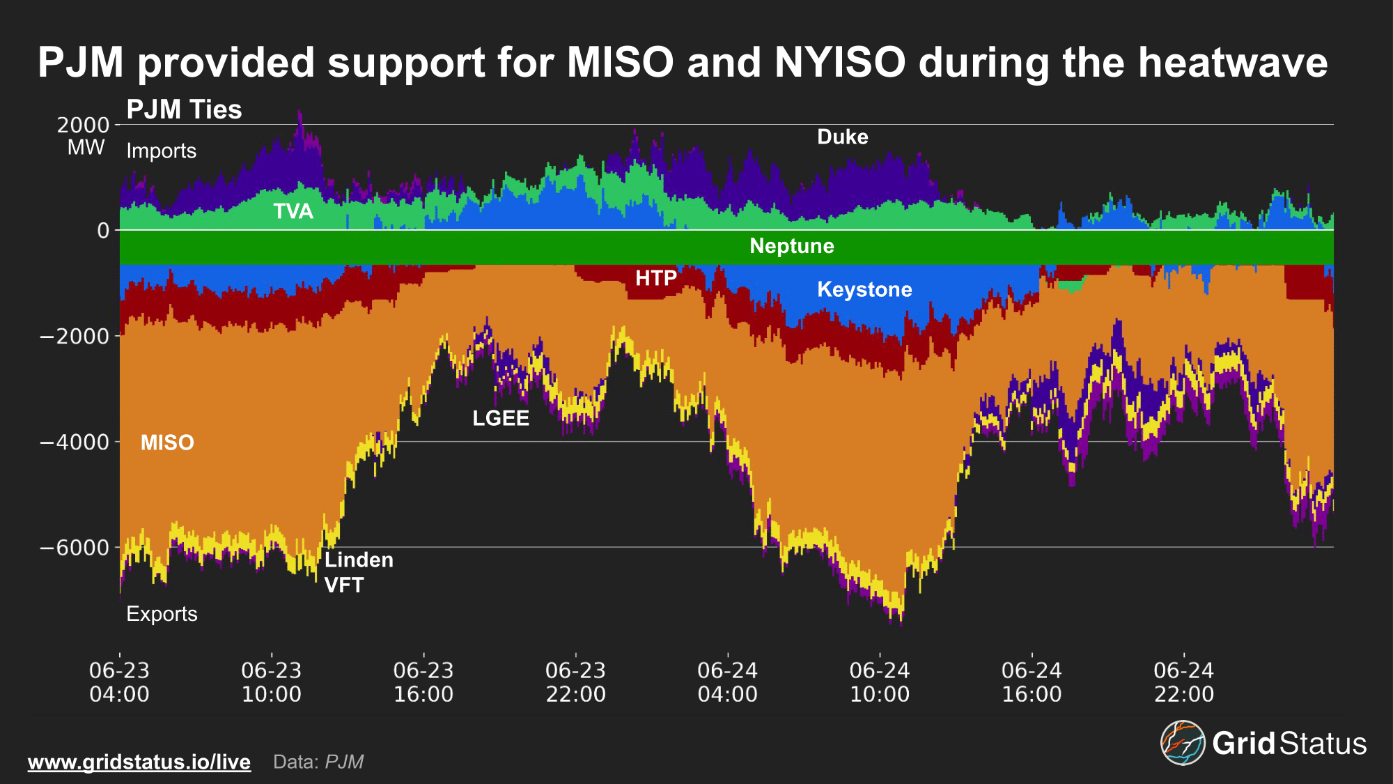 Long-range transmission dreamers use the aspirational phrase “a grid bigger than the weather” to describe the complementary effects an interconnected region can unlock in terms of reliability. Events like these provide a great example of these benefits. The Eastern Interconnection is not entirely interconnected, and certainly limited in terms of transfer capability, but it’s closer to that phrase than any other part of North America, with neighbors leaning on each other and their ability to wheel power through interconnected regions.
