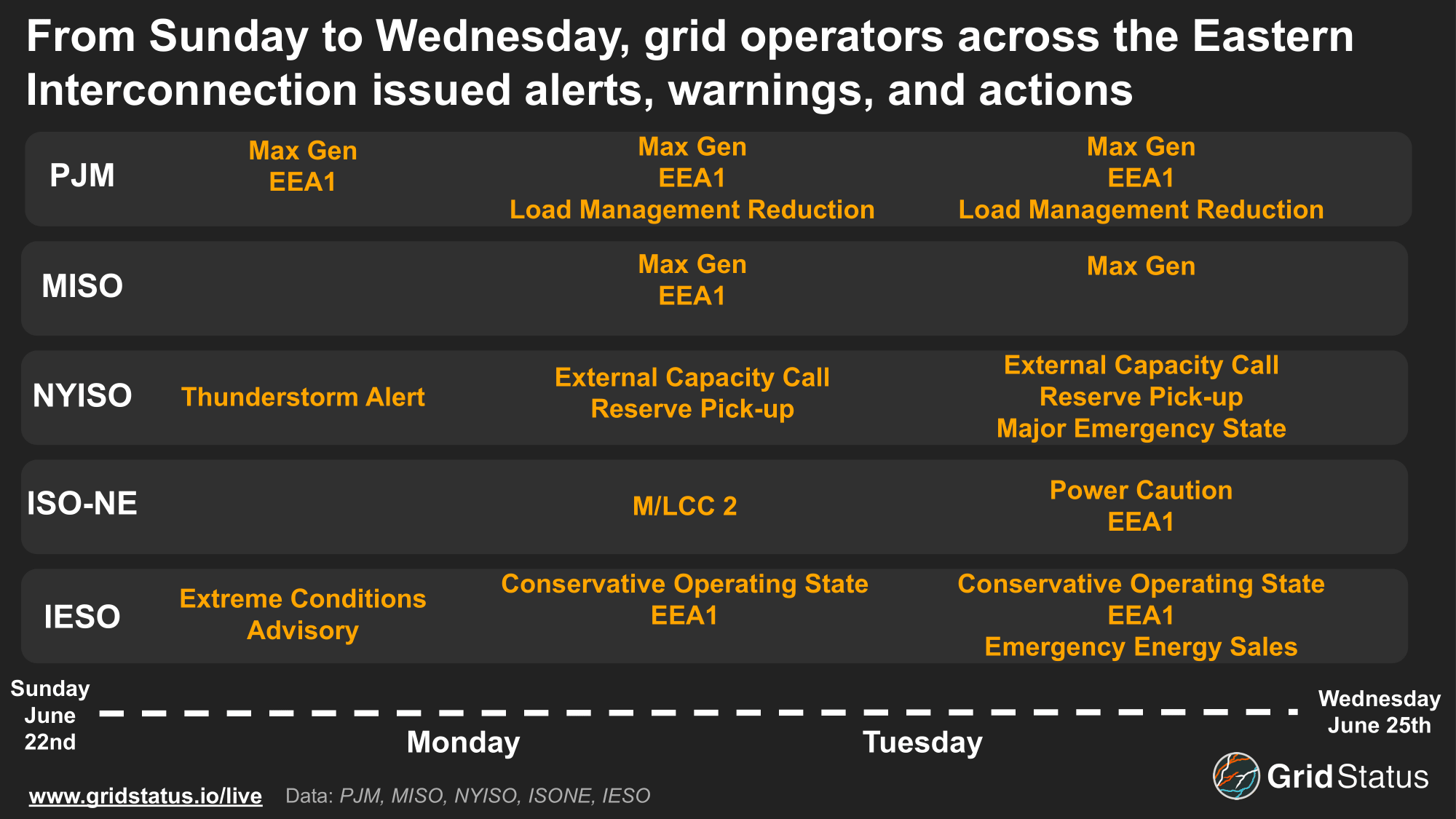 Given the relatively accurate long-range forecasts, grid operators had ample time to prepare for this week’s strong demand. As confidence in the severity increased, operators began issuing advance notices and taking emergency actions.