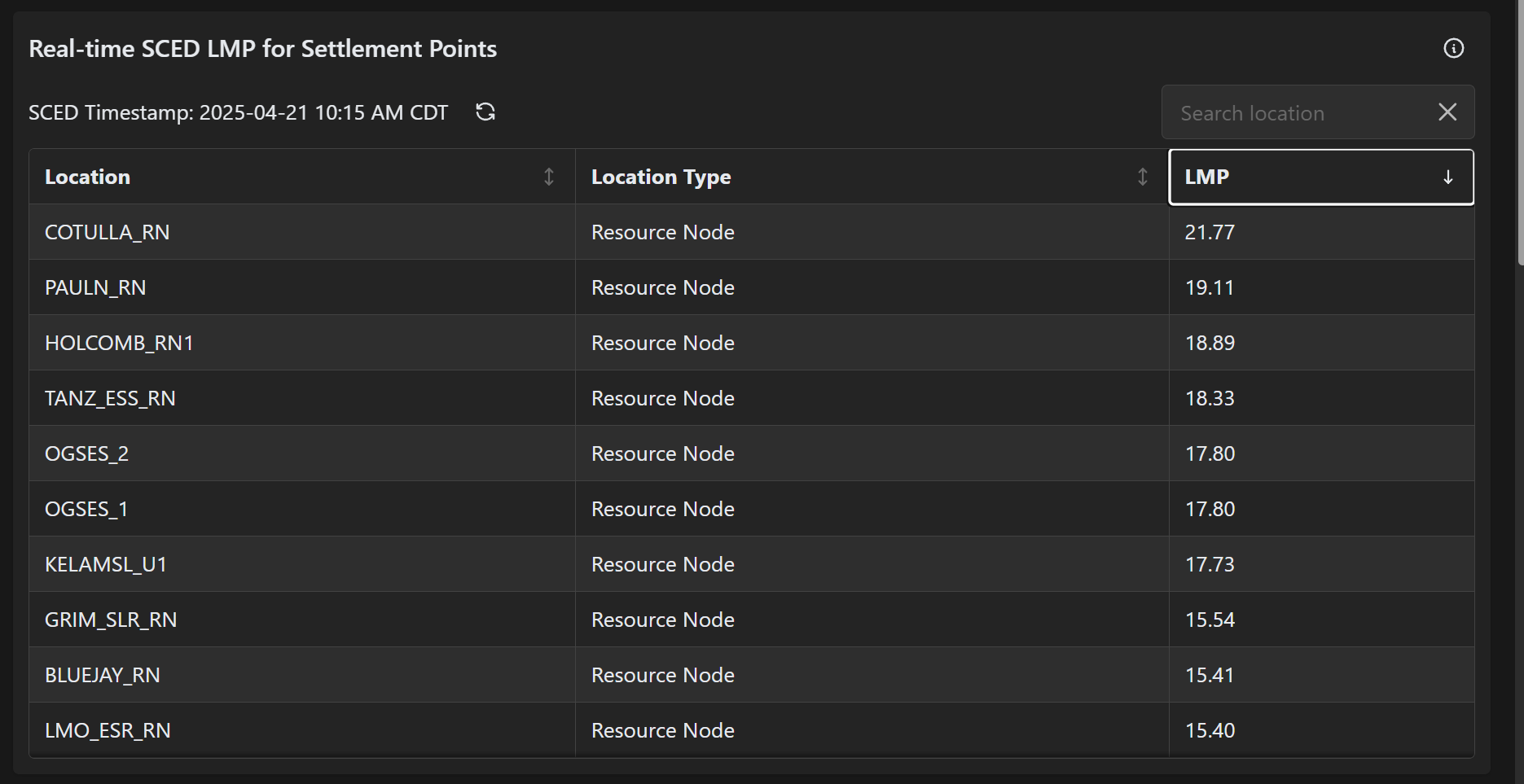 Of course, there is an easier way. If you were tracking the market on our ERCOT live page in real-time, the pricing table auto-updates and can be sorted from highest to lowest.