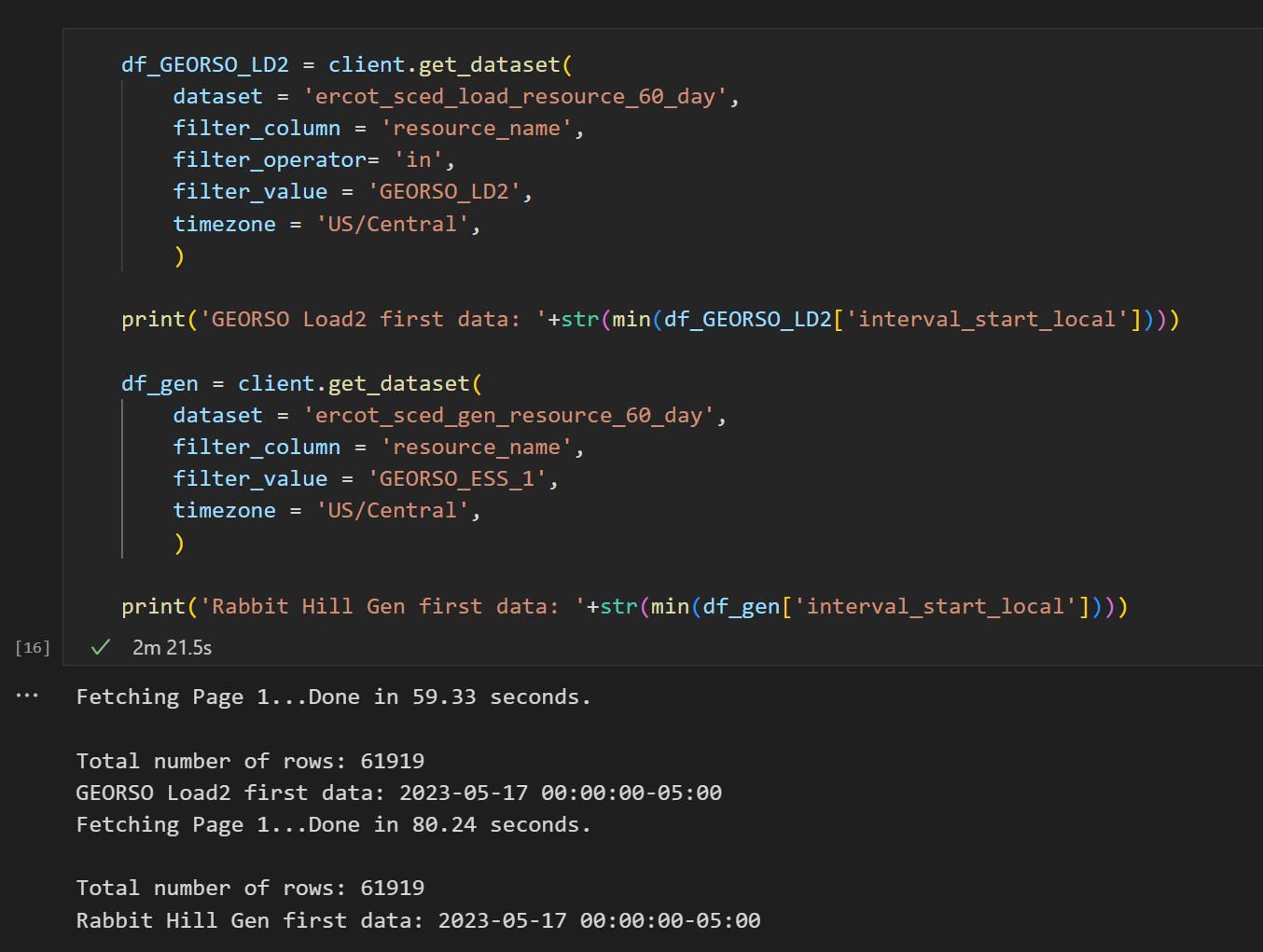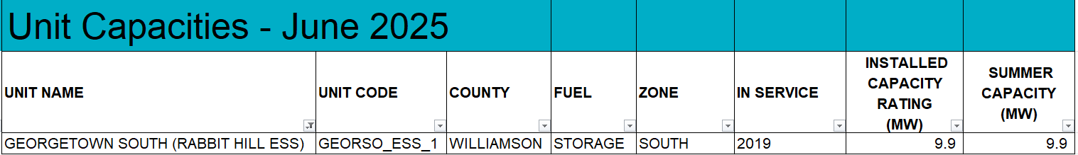 The dates match, and while not in the screenshot, I did check GEORSO_LD1 as well, its data begins on November 2nd, 2018, well before Rabbit Hill came online. Battery data will get a useful facelift when ERCOT implements the RTC+B project, as batteries will become unified assets instead of their current split nature.