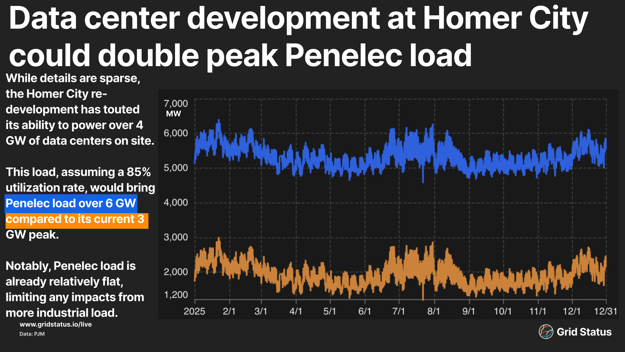 Beyond the level of potential new generation coming from the plant itself, the planned injection of new load to a relatively sparsely populated zone, similar to the ERCOT West load zone that Abilene is in, has profound impacts on trends. During the 2025 5CP season, Pennelec saw a peak load of 2,896 MW on 6/23/2025. The injection of new datacenter load, particularly if it seeks to match the size of onsite generation, would push the zone to peak closer to 7 GW, closer to larger PJM zones like BGE.