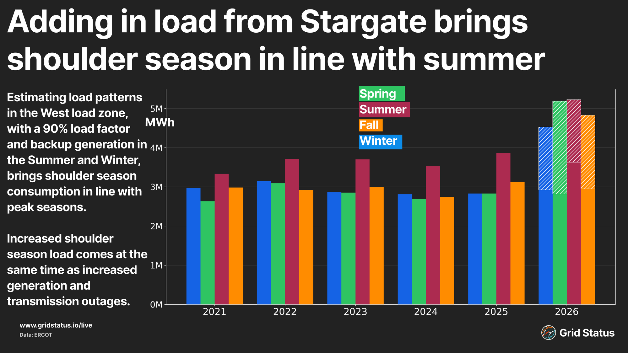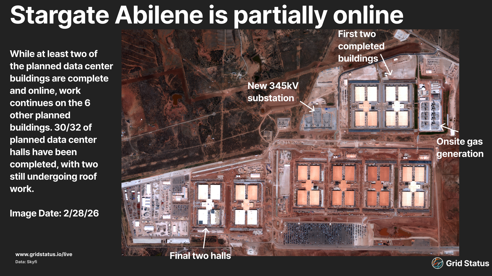 OpenAI and Oracle's flagship Stargate project is expected to sit at the intersection of ERCOT's West and North zones, reshaping demand in an area primarily composed of residential load. While the project is partially complete and pulling from the grid as of March 2026, future expansion has been thrown into turmoil in recent weeks.