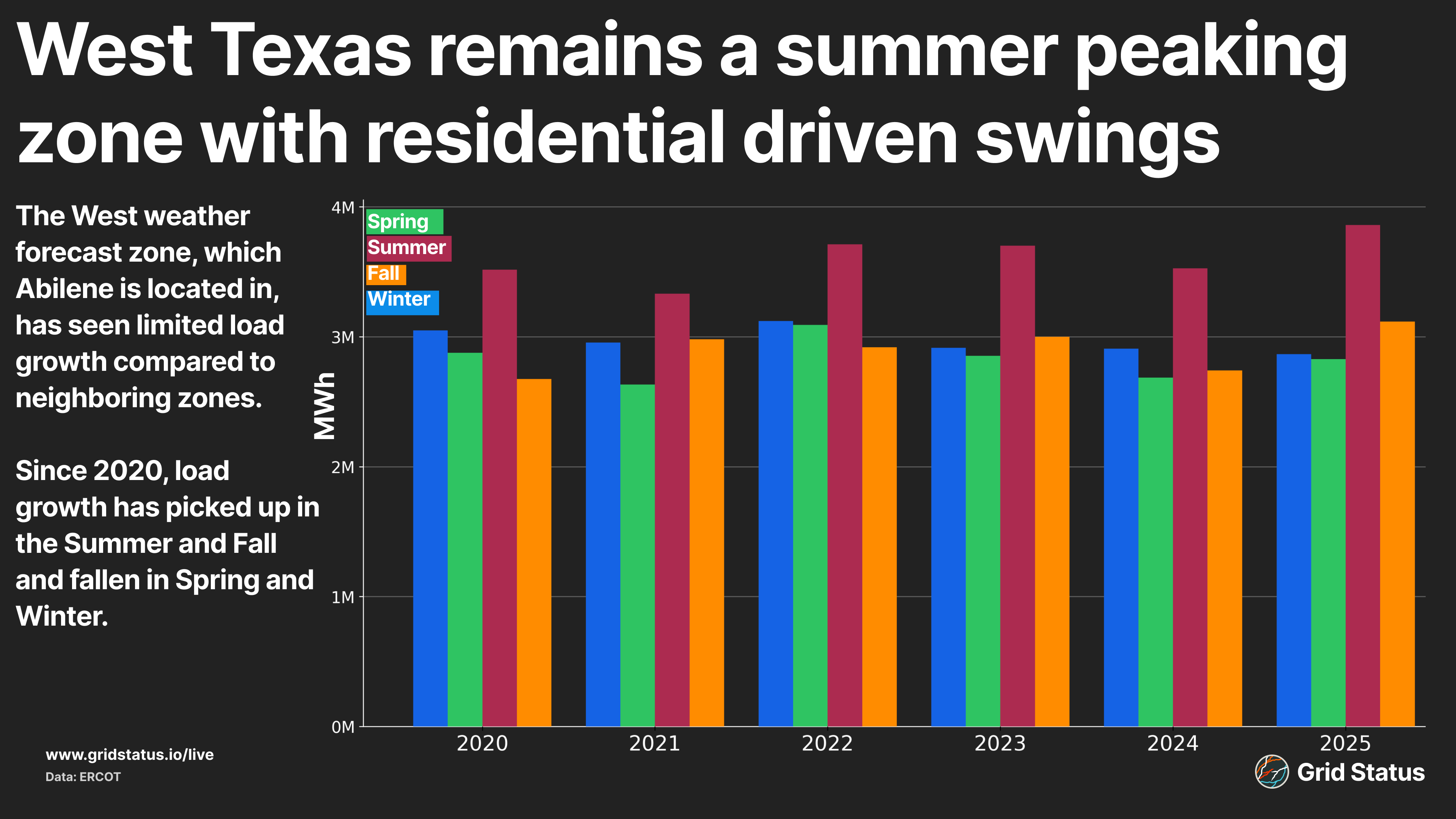 Size isn’t the only key metric when it comes to the influx of new large demand, as the point of interconnection and market zone can be critical for consistent power and costs. The Stargate data center, as well as Abilene itself, is located in ERCOT’s West weather load zone.