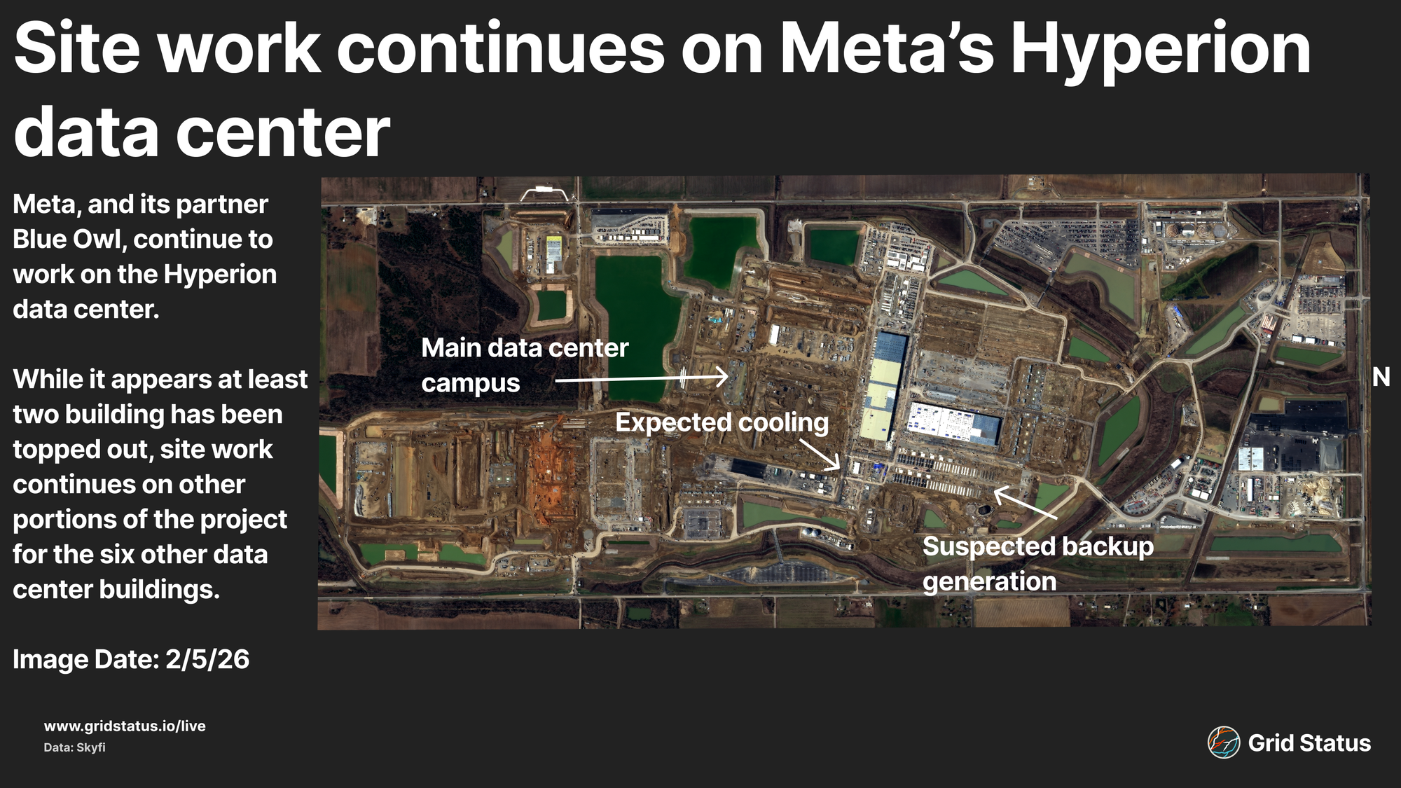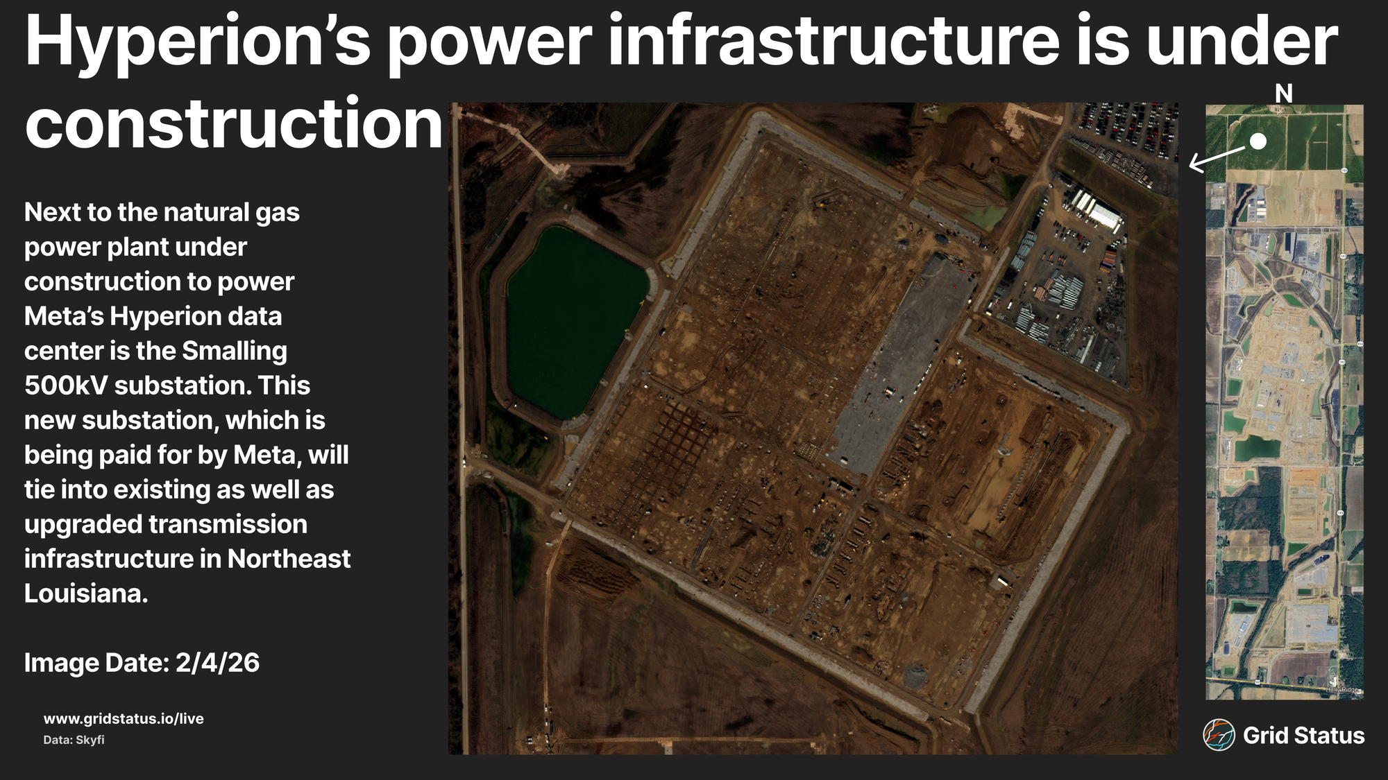 Dubbed Hyperion, Meta’s (fka Facebook) Richland Parish, Louisiana data center project is one of the largest under development in the world, with power consumption at this one site measured in GWs. Meta’s financing approach for the project involved forming a joint venture with Blue Owl Capital to cover the $27 Billion development costs, with Blue Owl owning 80% of the project and Meta the remaining 20%. Built on vacant land in a rural parish of less than 20,000 in Northeast Louisiana, the site itself was likely chosen due to its proximity to a nearby 500kV transmission line and the willingness of the state’s utility, Entergy, to build out the power infrastructure necessary to support a large increase in its serviceable load.