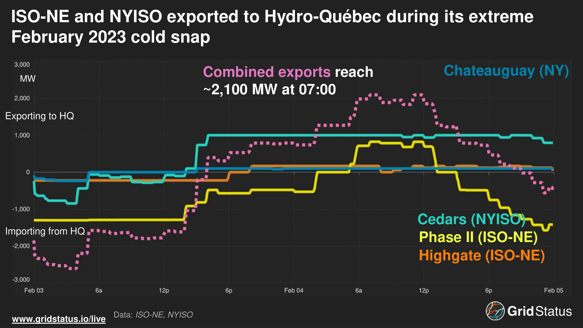 During this extreme event, Québec turned to neighboring regions and existing power purchase agreements to meet demand as heating load exceeded internal supply, including flows from the US.