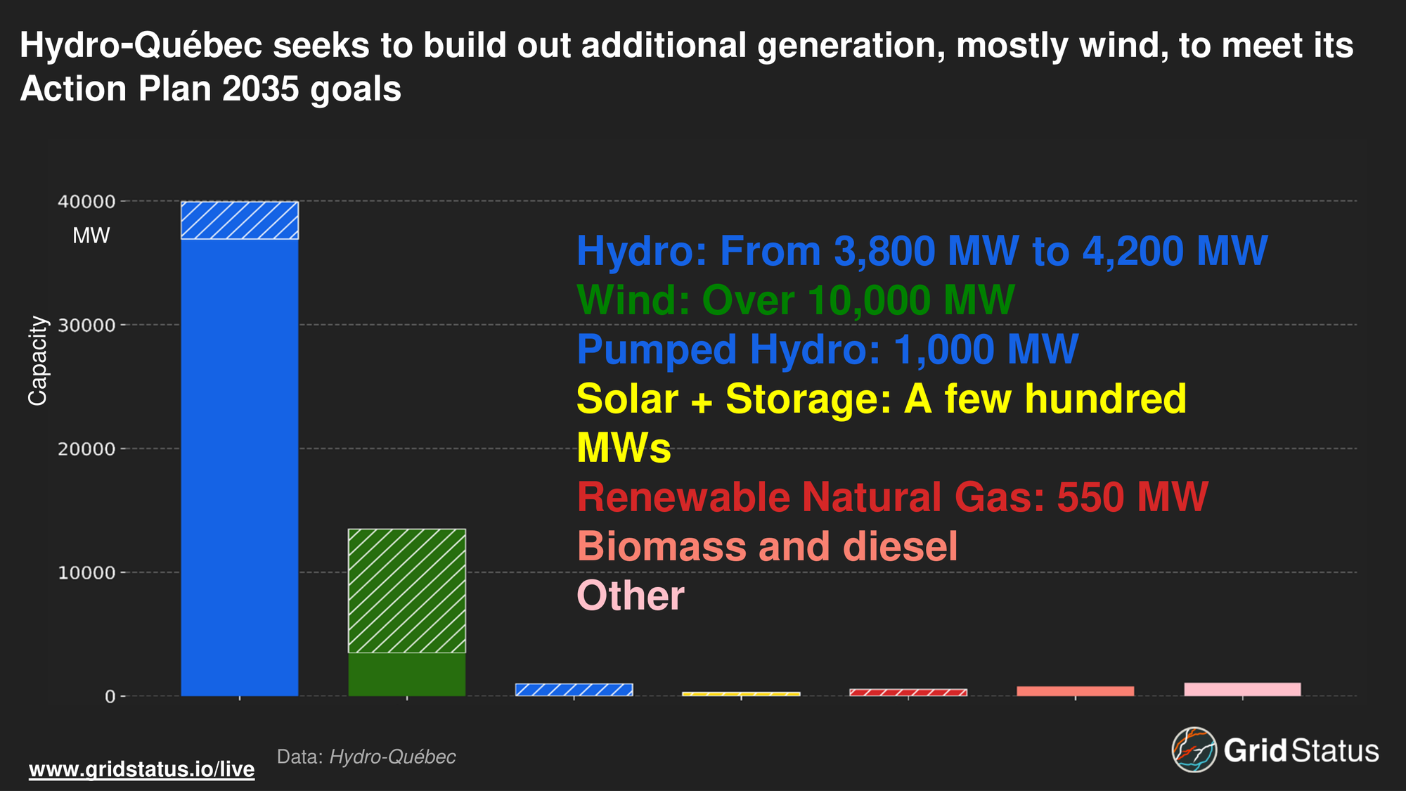 A major aspect of Action Plan 2025 is meeting the goal of adding 10,000 MW of additional capacity to the grid. Similar to metrics such as Effective Load Carrying Capability (ELCC), Québec assigns wind a value of 15% of its nameplate capacity, requiring a large buildout to meet capacity goals.