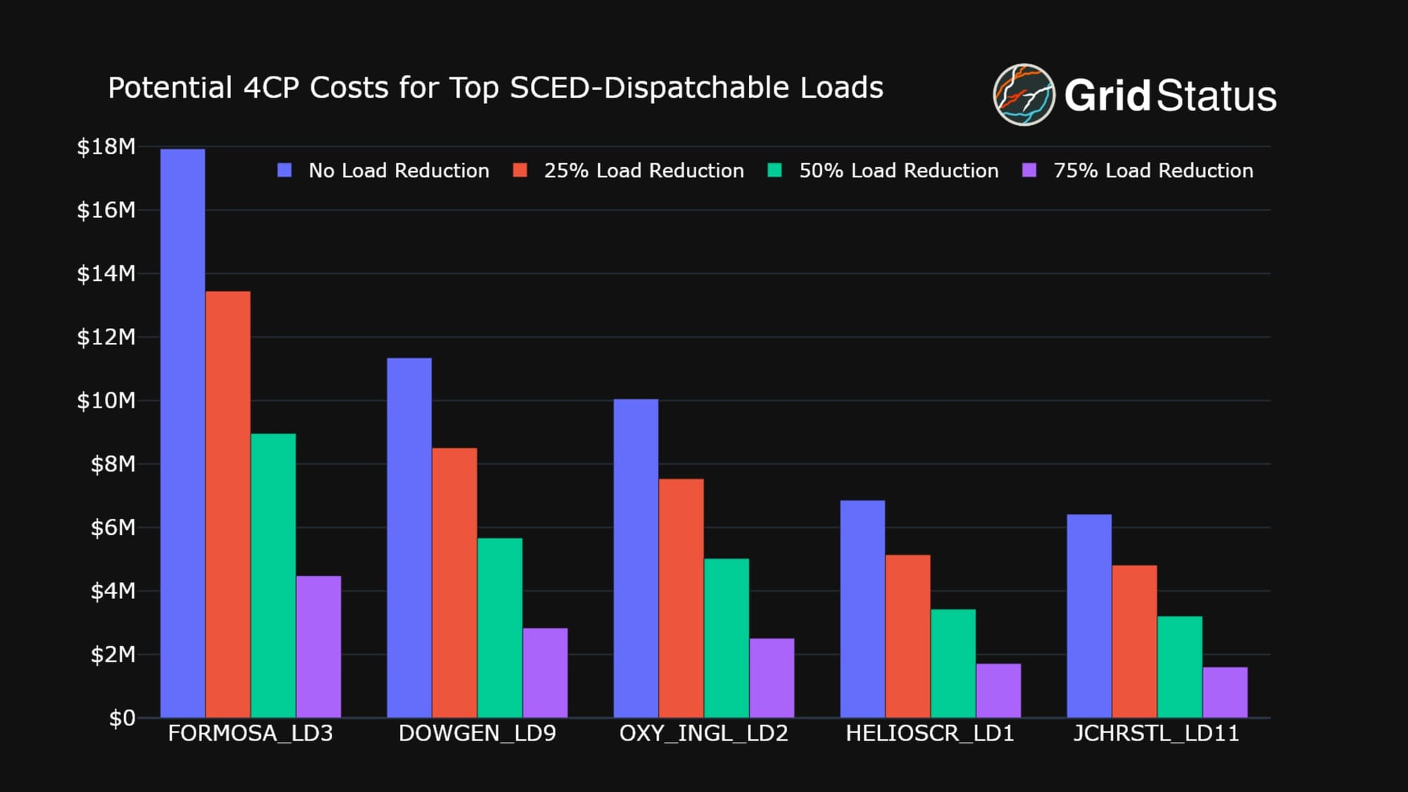 In a vacuum, the largest load in the above chart, FORMOSA_LD3, could save upwards of $13M by reducing their median demand by 75% across the single hour in question.