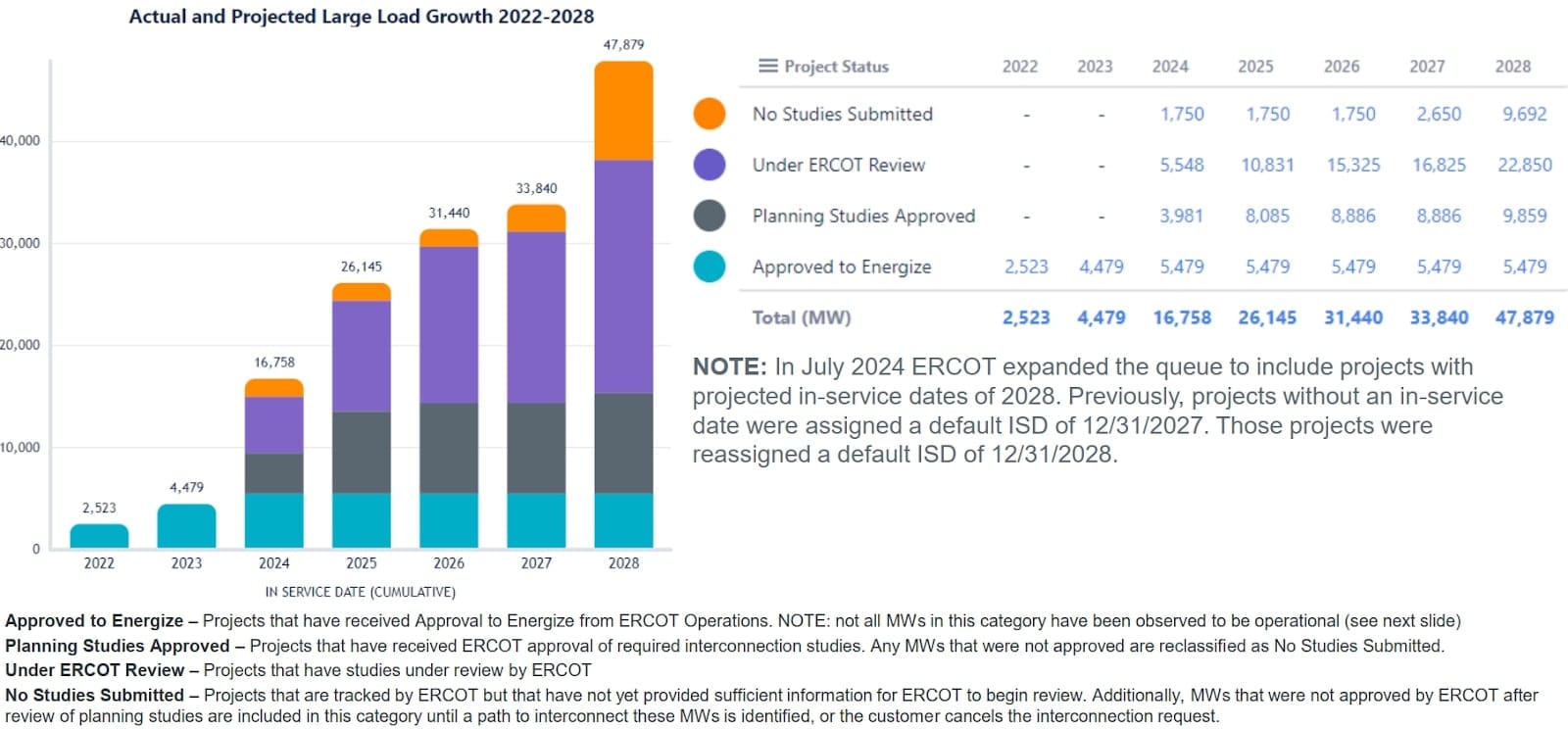 Both can consume a shockingly large amount of power in a relatively small area, and some can be extremely flexible in that consumption - closer to a battery than even a gas plant. Bitcoin mining operations in particular have well-defined financial breakpoints such that you can identify with reasonable confidence where they should curtail with respect to wholesale power prices. Their rapid growth and differentiating characteristics were significant motivators for ERCOT to create a new category of interconnections to track and manage, Large Flexible Loads (LFLs).