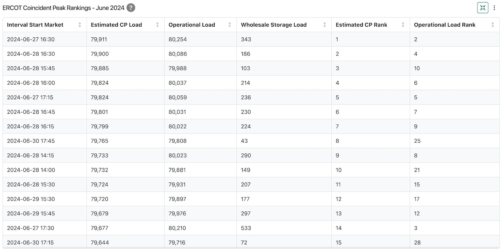 Many market participants thought that the June coincident peak had been at 17:00 on the 27th (which is when the load peak occurred based on operational data provided on ERCOT’s website), but that was not the case.