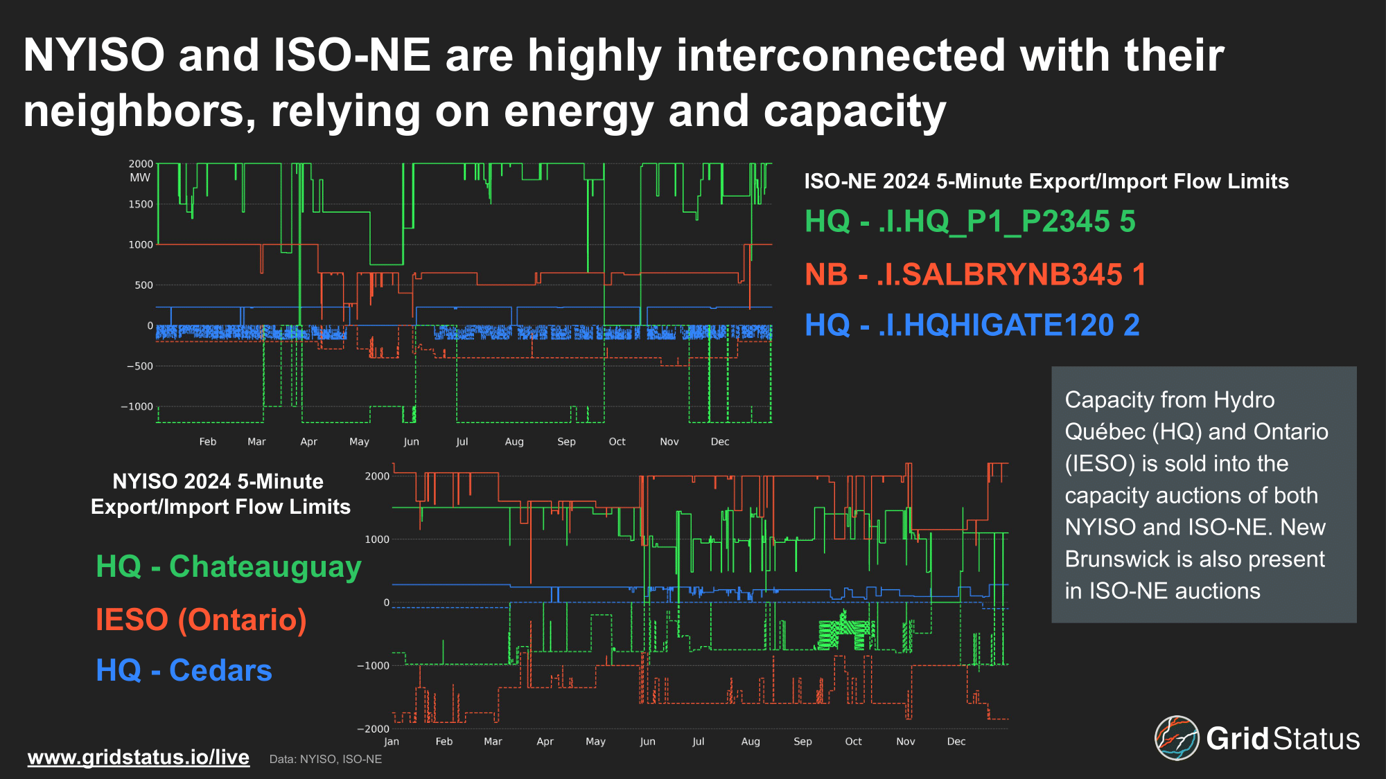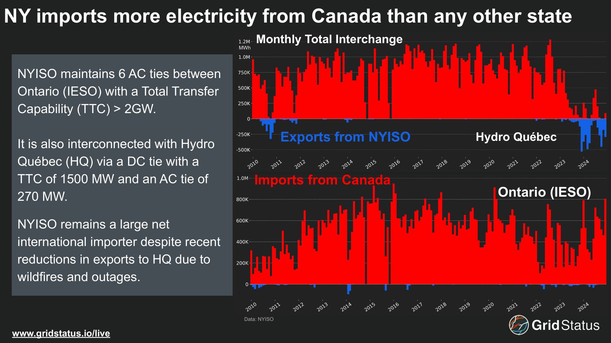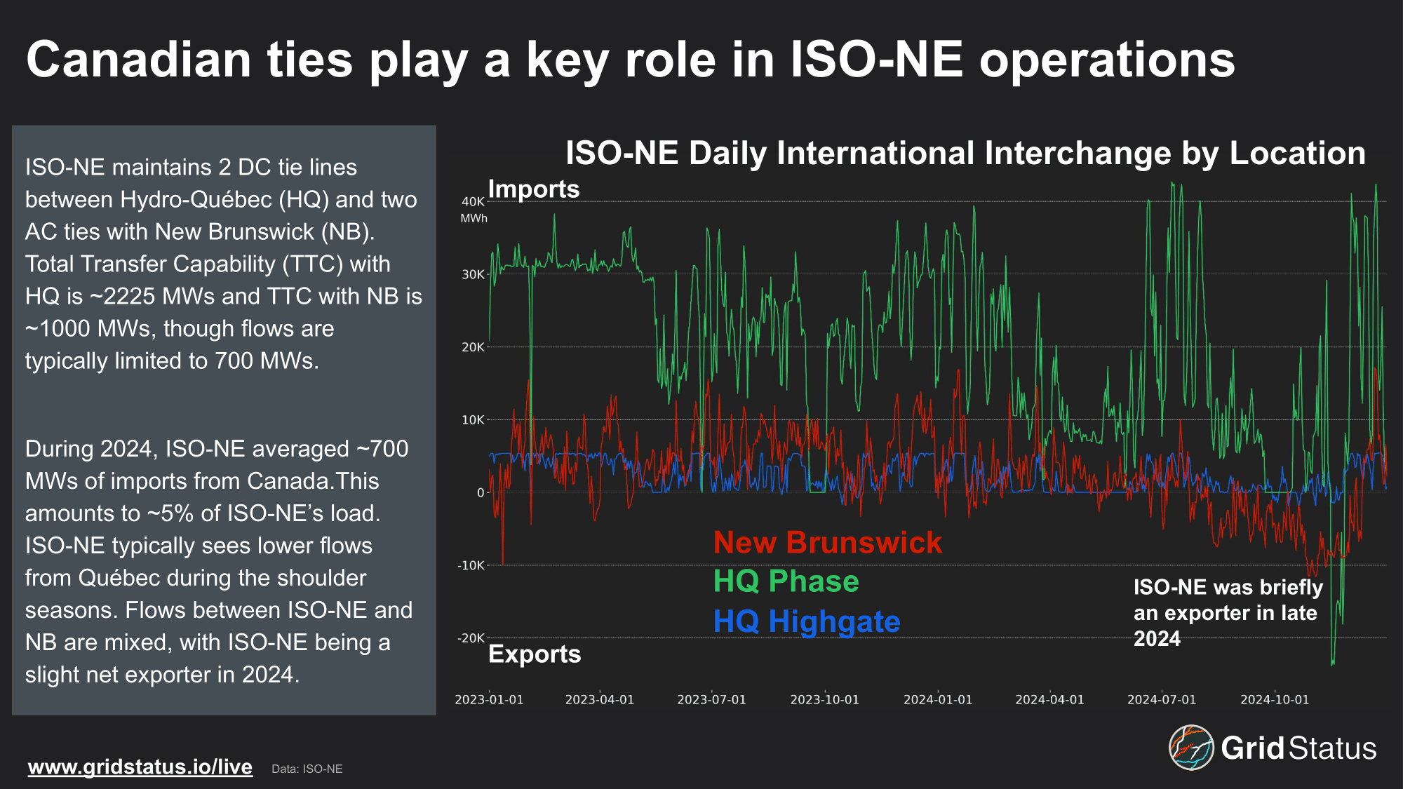 New York and New England are heavily interconnected with the Canadian grid, importing cheaper and cleaner power than internal generation. Tariffs are driving uncertainty in both operations and planning.