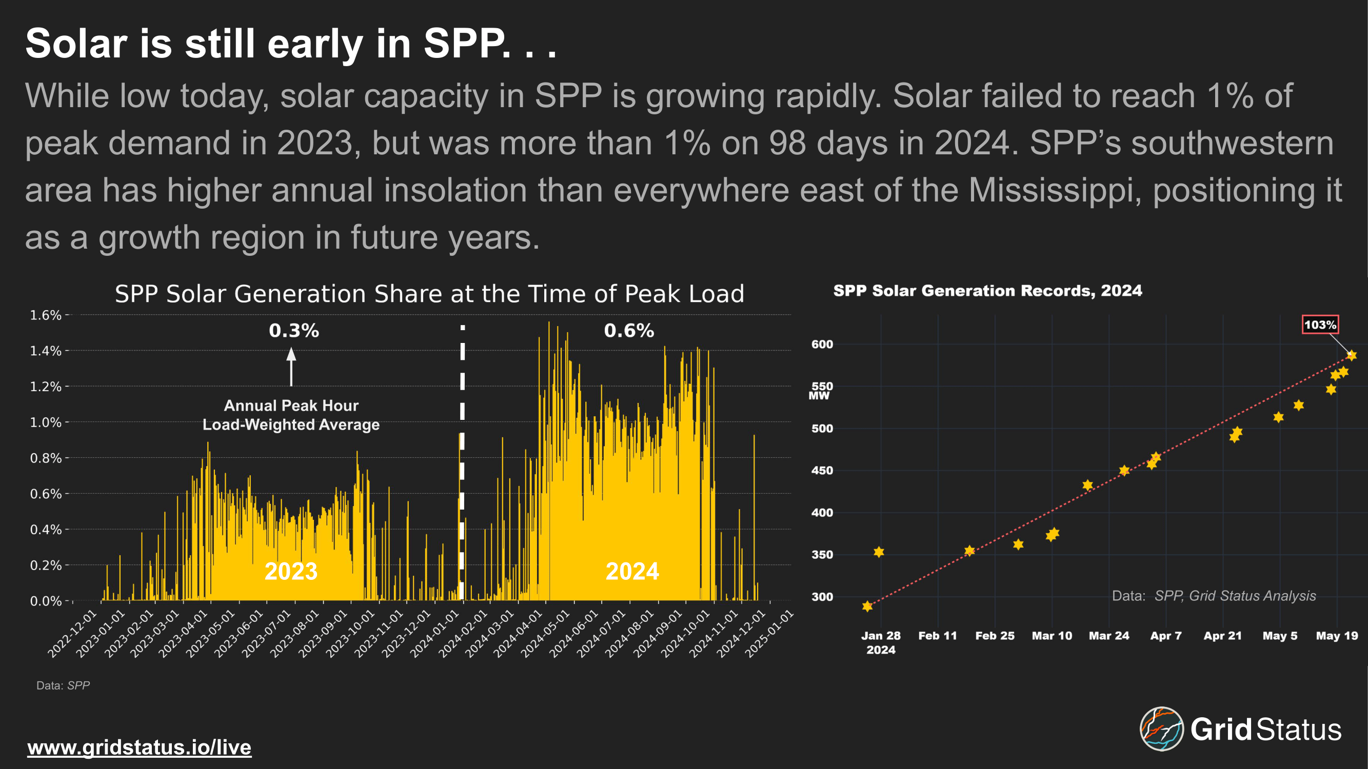 While solar in SPP is small today, some of the market's footprint sits in prime territory. Unfortunately, the highest isolation areas are even further from load, past the wind-heavy portion of the plains. As more solar is deployed in that region, deliverability will be a key metric to track.